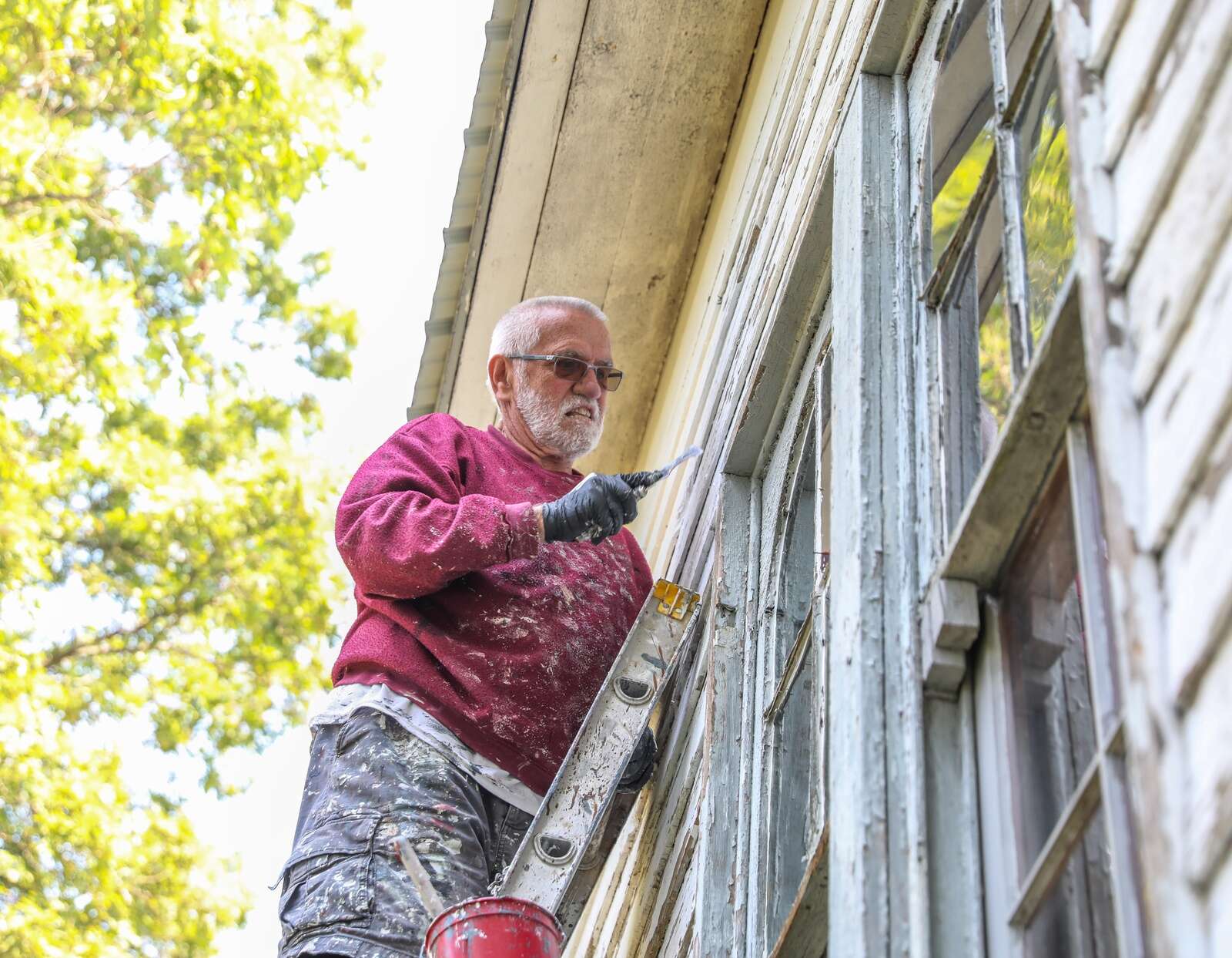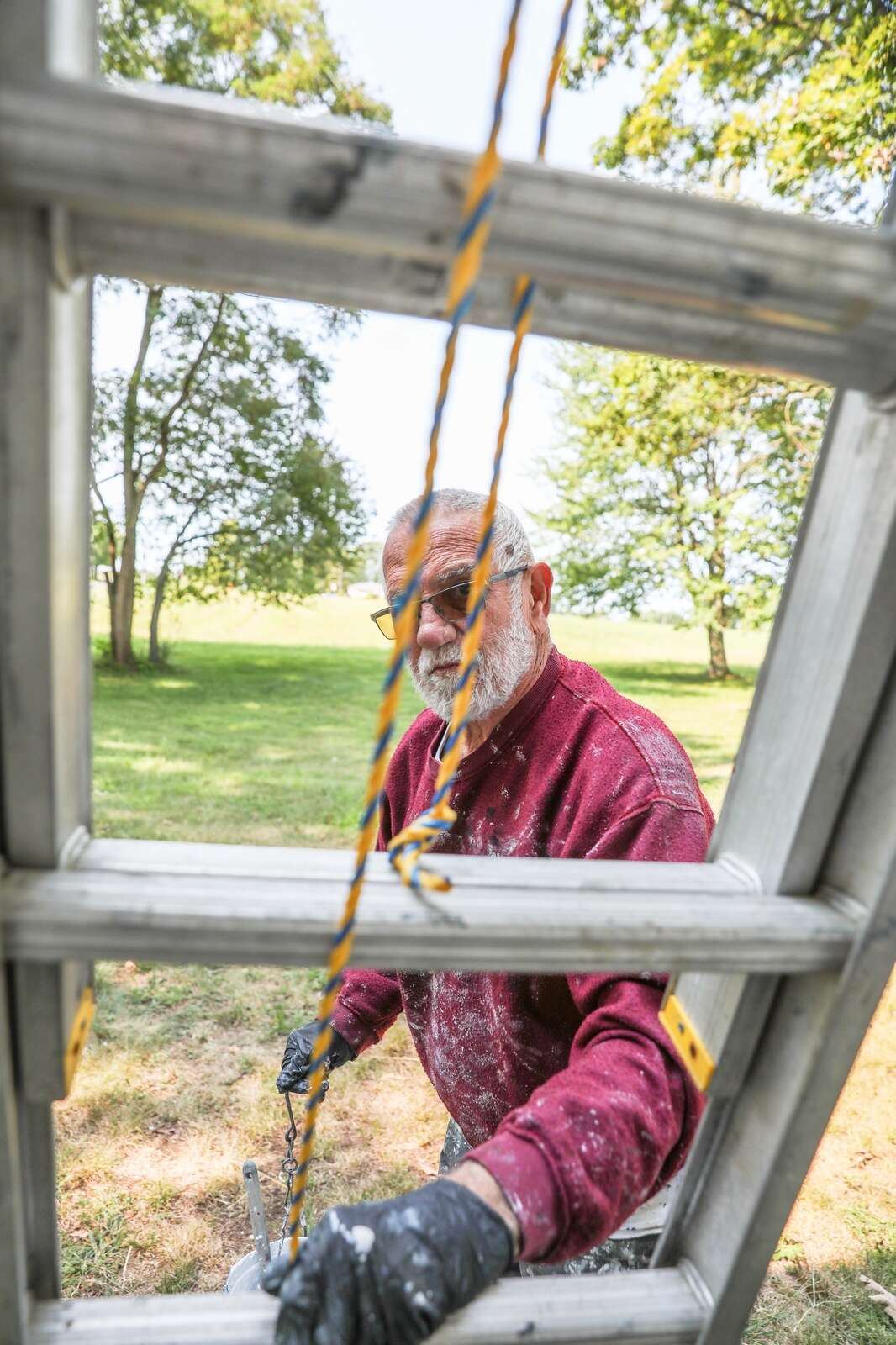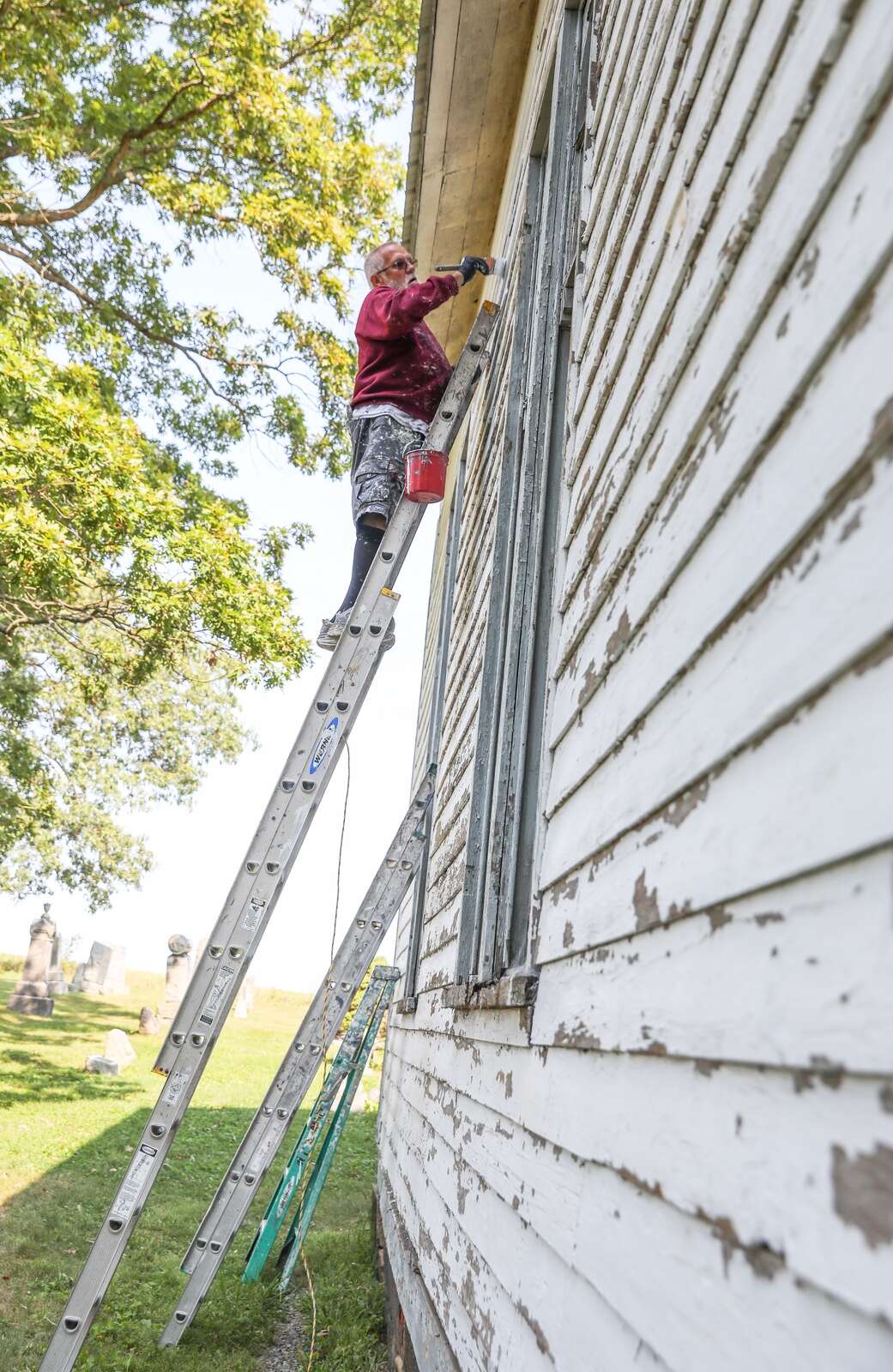 Volunteer Bob Bower paints North Union Church during a restoration project at the church on Wednesday, Sept. 4. Morgan Phillips/Butler Eagle