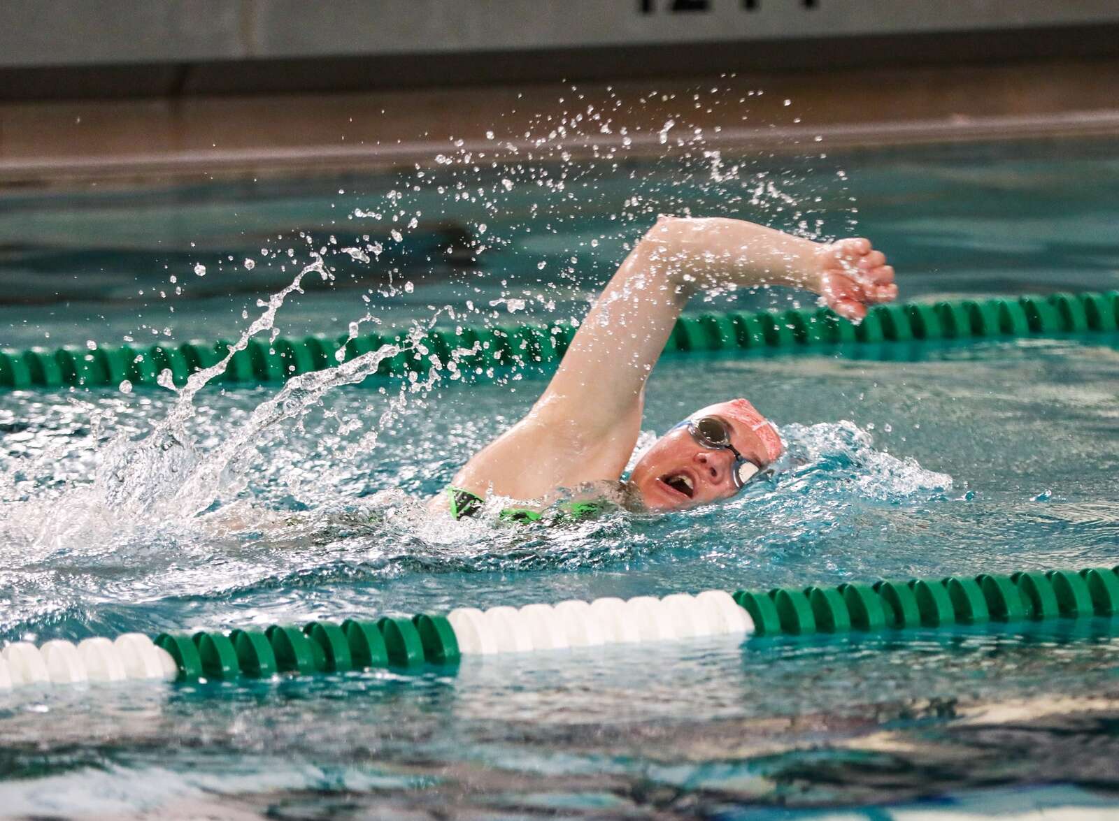 Alex Daigle competes in the 100-meter swim during the Toughest Competitor Alive event in the 2024 Can-Am Police-Fire Games at Morrow Fieldhouse at Slippery Rock University on Saturday, July 20. Morgan Phillips/Butler Eagle