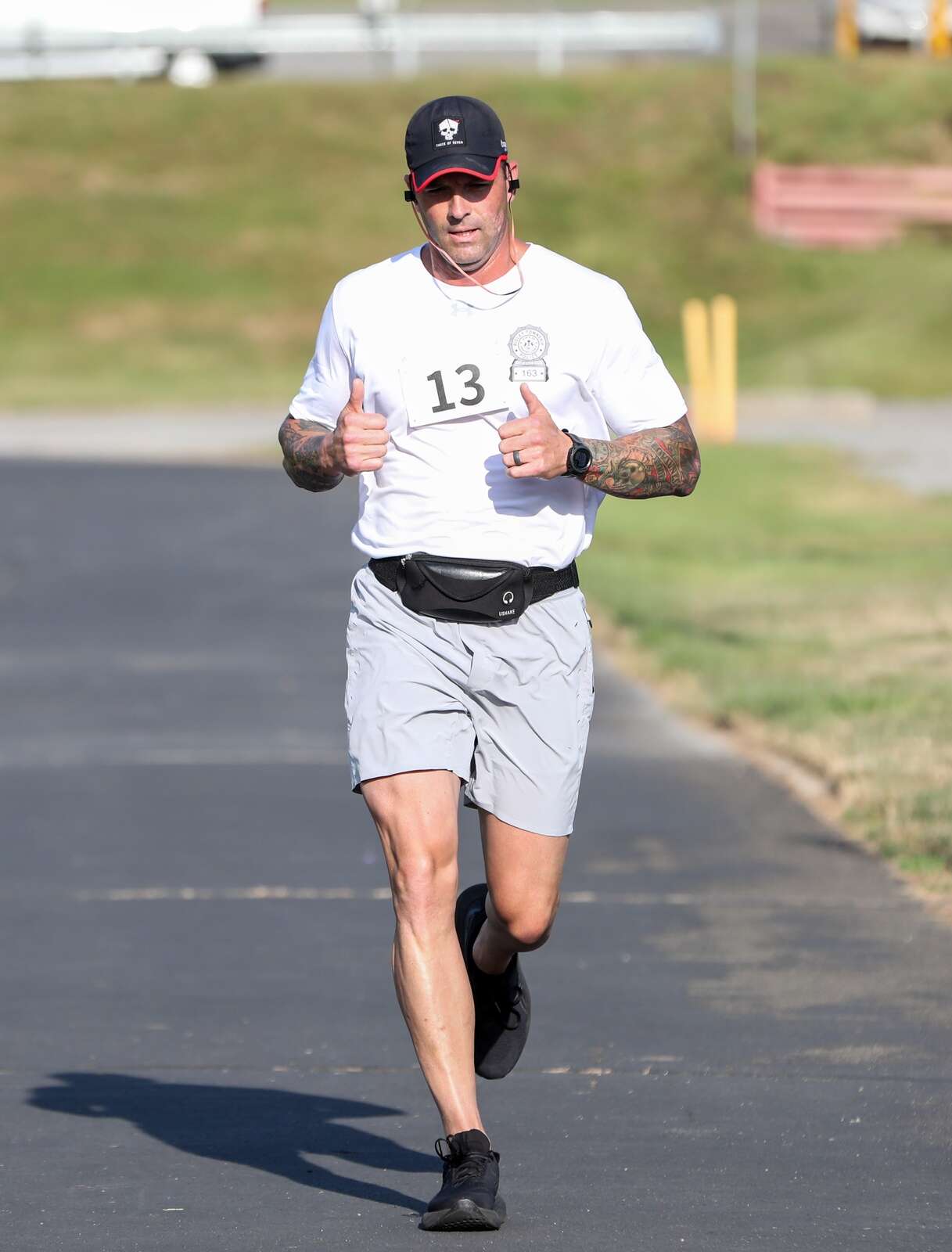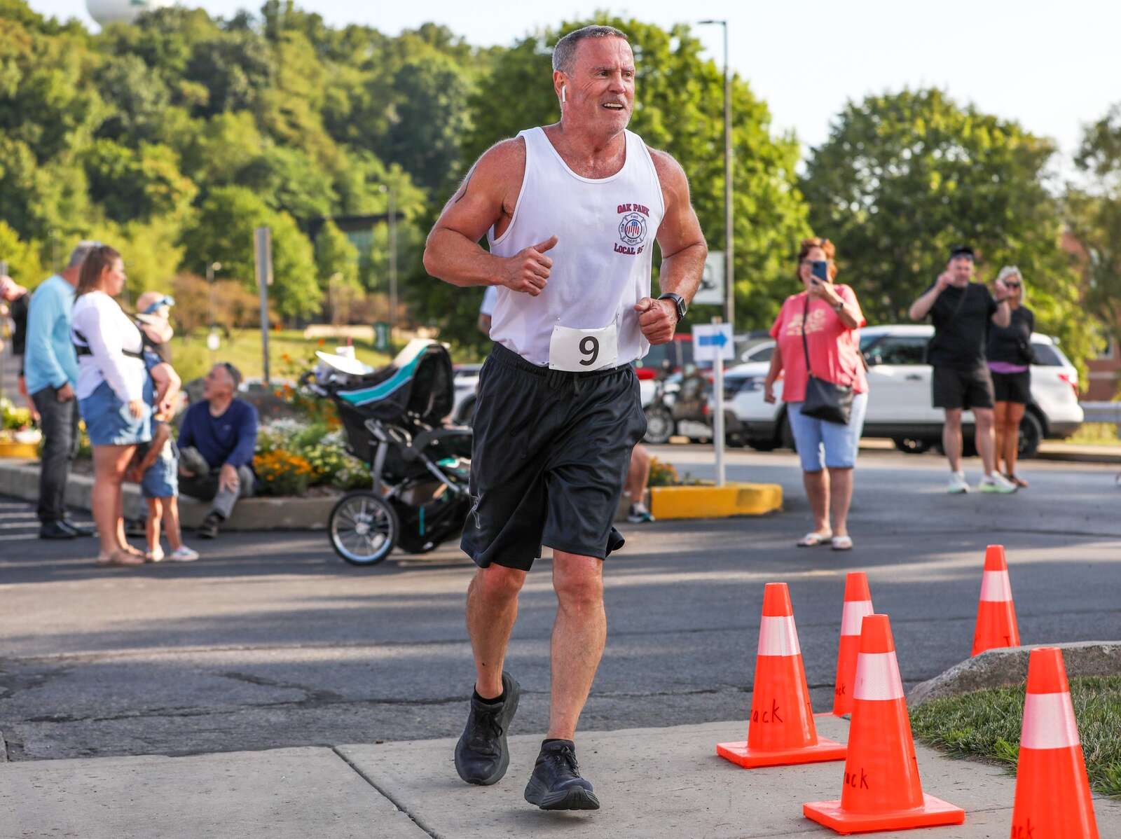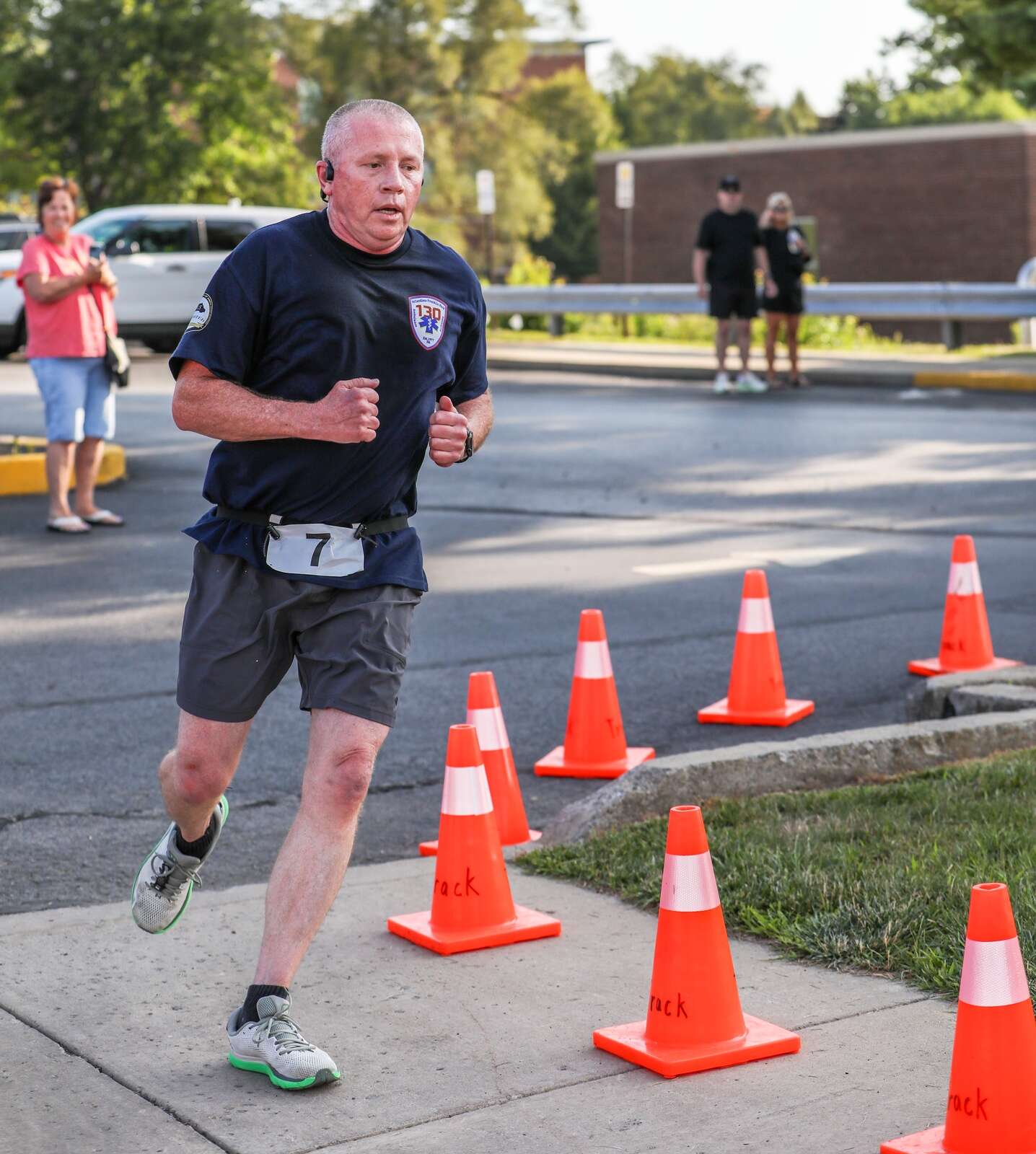 Christopher Dell runs in the 5K portion of the Toughest Competitor Alive event in the 2024 Can-Am Police-Fire Games at Morrow Fieldhouse at Slippery Rock University on Saturday, July 20. Morgan Phillips/Butler Eagle