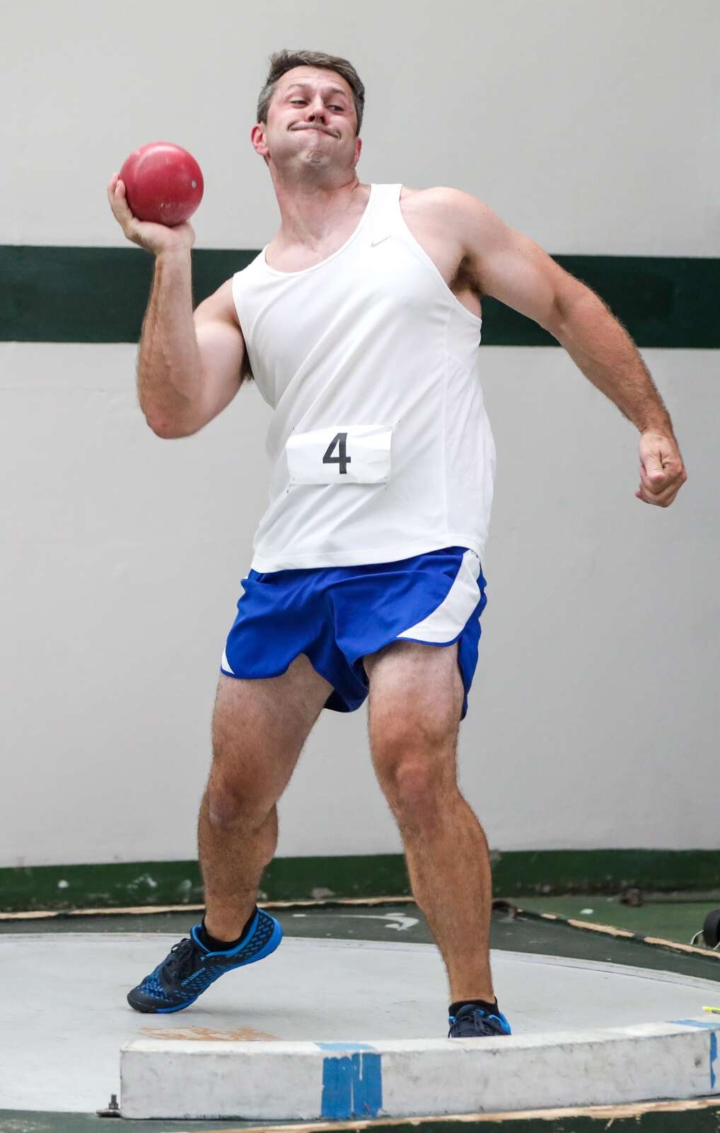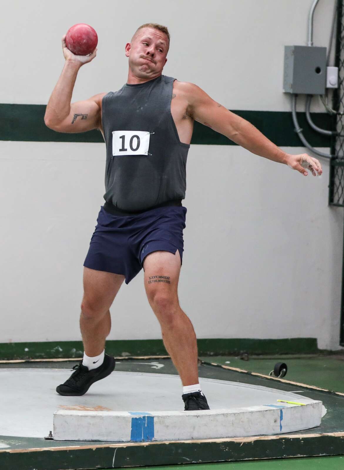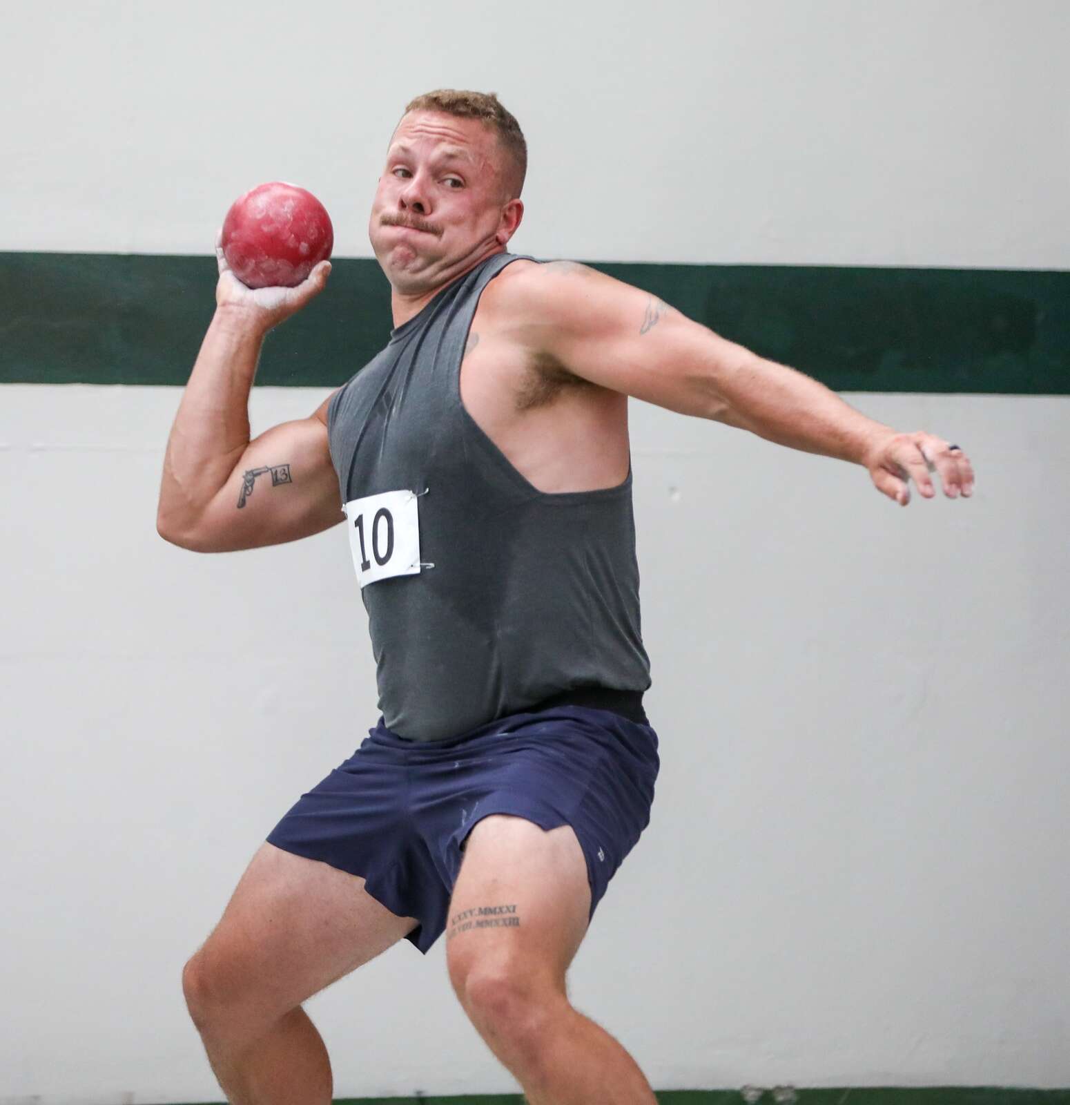 Jack Rush competes in the shot put portion of the Toughest Competitor Alive event in the 2024 Can-Am Police-Fire Games at Morrow Fieldhouse at Slippery Rock University on Saturday, July 20. Morgan Phillips/Butler Eagle