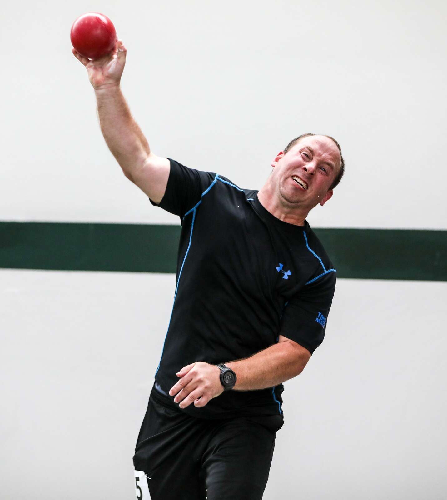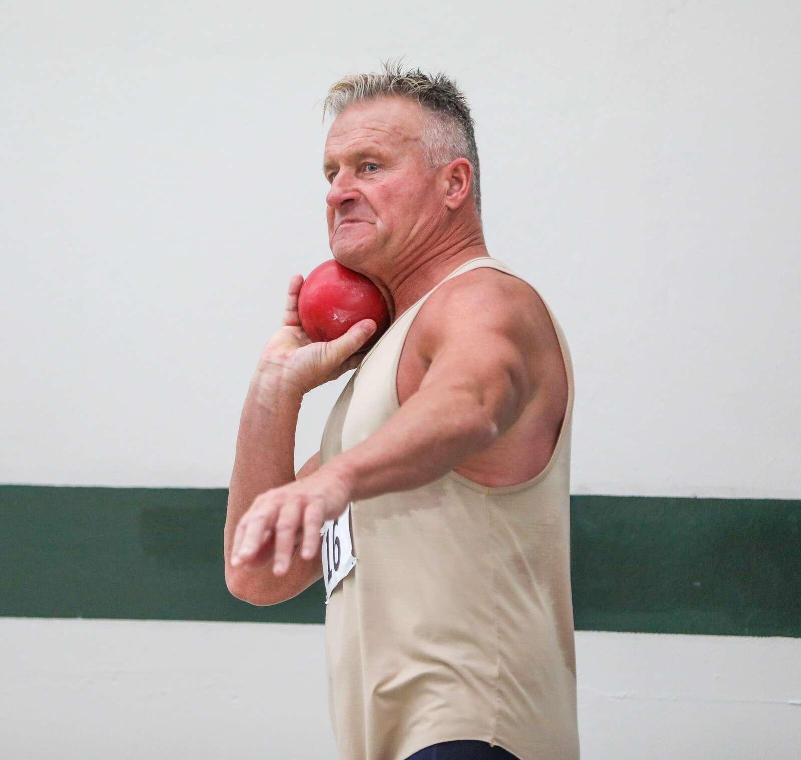 Ken Wagner competes in the shot put portion of the Toughest Competitor Alive event in the 2024 Can-Am Police-Fire Games at Morrow Fieldhouse at Slippery Rock University on Saturday, July 20. Morgan Phillips/Butler Eagle