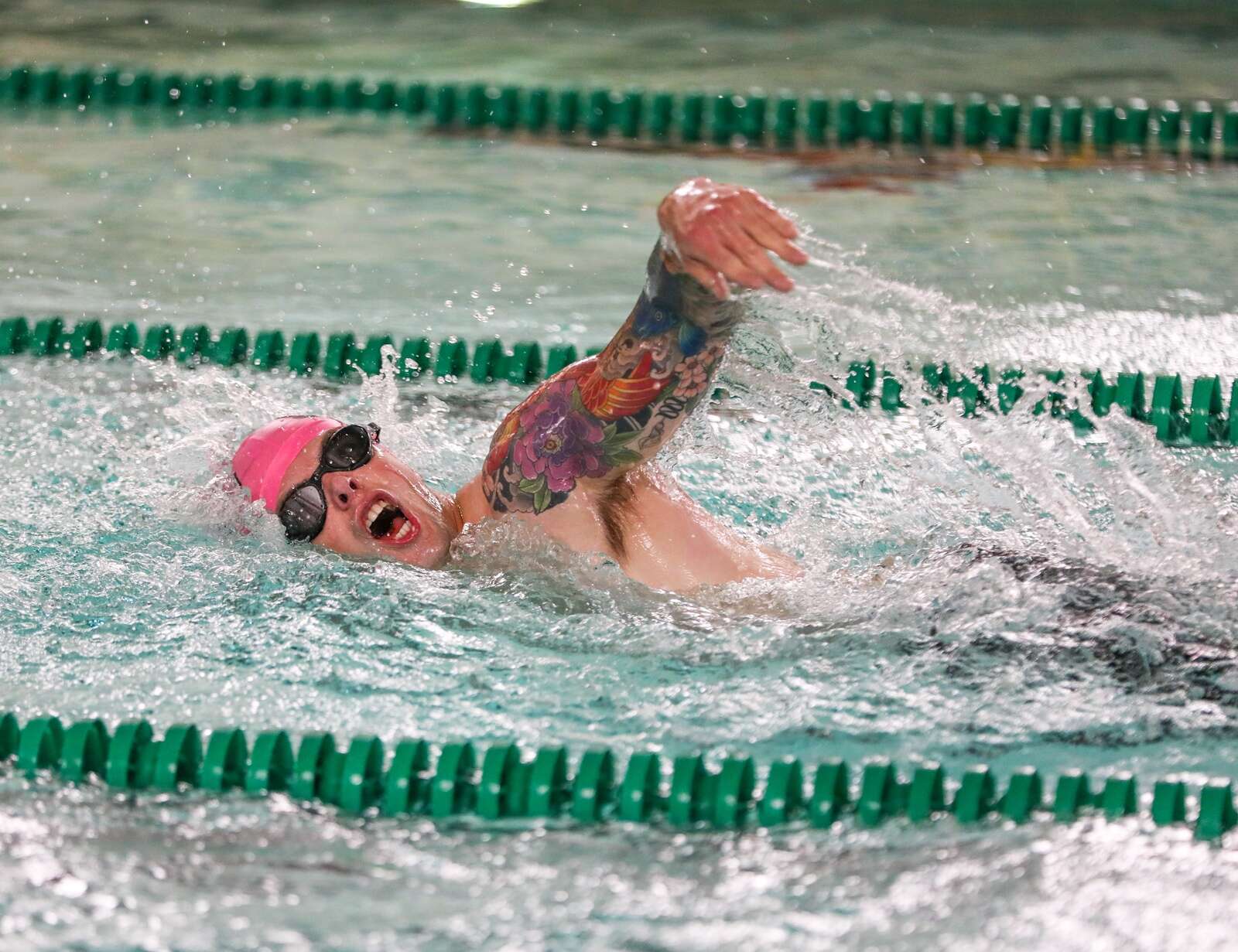 “I’m a Masters swimmer, so I thought I’d do well there,” she said. “I’ve always competed in female divisions before … This is the first time I’ve competed against all men, but I’m fine with it. We’re all trying to win.”