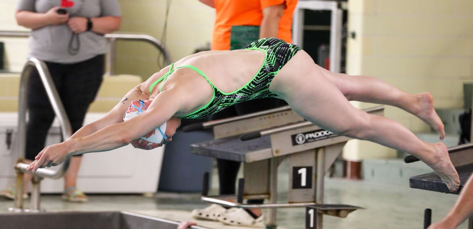 Kate Galamiyeva dives into the swimming pool during the 100-meter swim during the Toughest Competitor Alive event in the 2024 Can-Am Police-Fire Games at Morrow Fieldhouse at Slippery Rock University on Saturday, July 20. Morgan Phillips/Butler Eagle