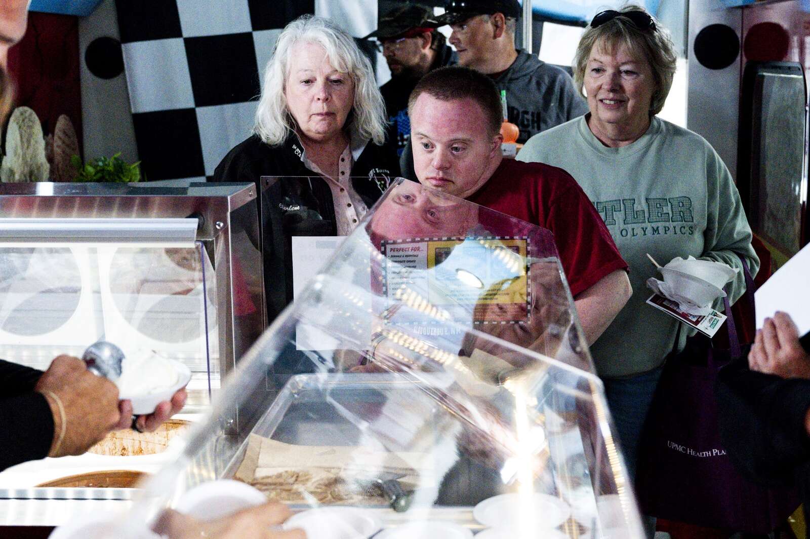 Steven Keck chooses vanilla as free ice cream is served to visitors of Family Fun Night on Tuesday, Aug. 20, 2024, at the Butler Farm Show grounds in Connoquenessing Township. Rob McGraw/Butler Eagle