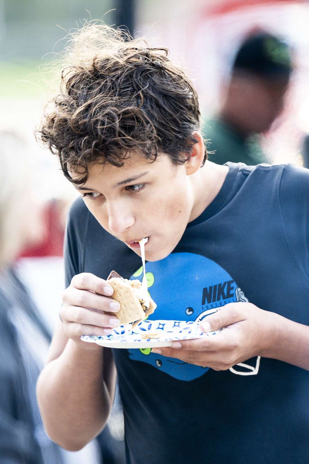 Myles Hemphill eats a s’mores sandwich during Family Fun Night on Tuesday, Aug. 20, 2024, at the Butler Farm Show grounds in Connoquenessing Township. Rob McGraw/Butler Eagle
