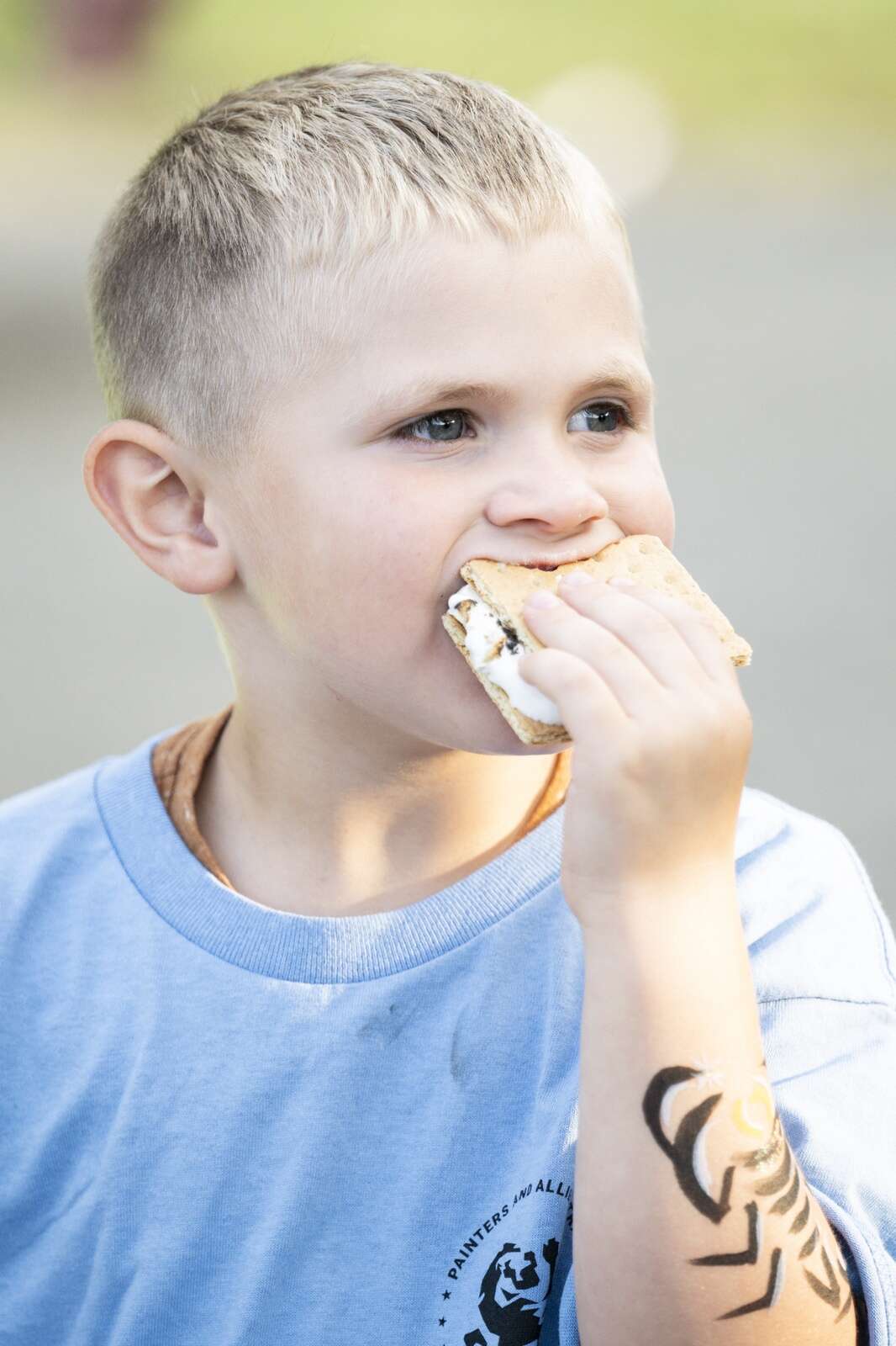 Hunter Organ eats a s’mores sandwich during Family Fun Night on Tuesday, Aug. 20, 2024, at the Butler Farm Show grounds in Connoquenessing Township. Rob McGraw/Butler Eagle