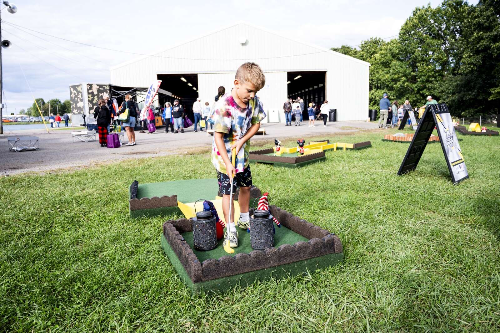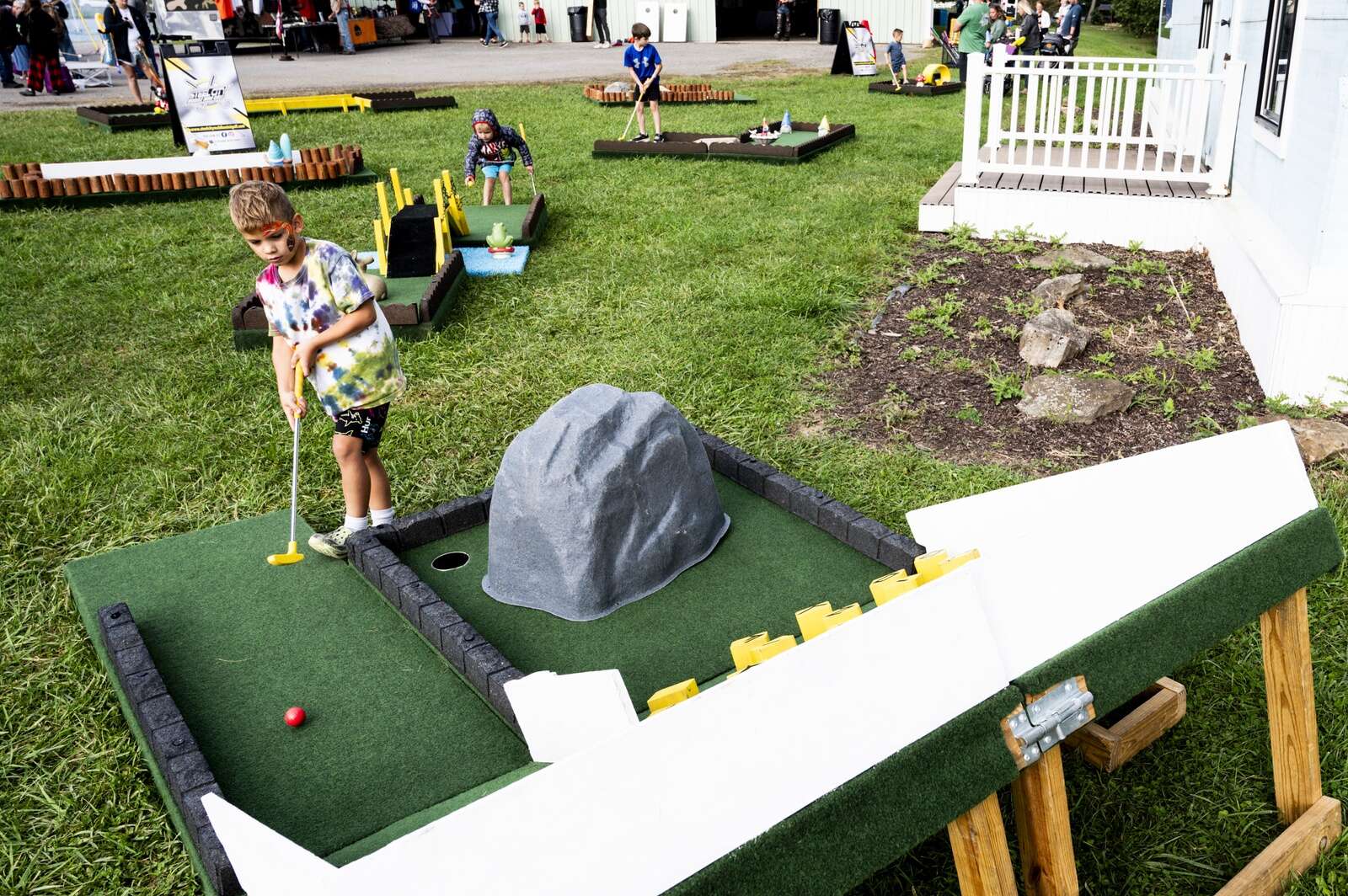 John Nagel plays mini golf during Family Fun Night on Tuesday, Aug. 20, 2024, at the Butler Farm Show grounds in Connoquenessing Township. Rob McGraw/Butler Eagle