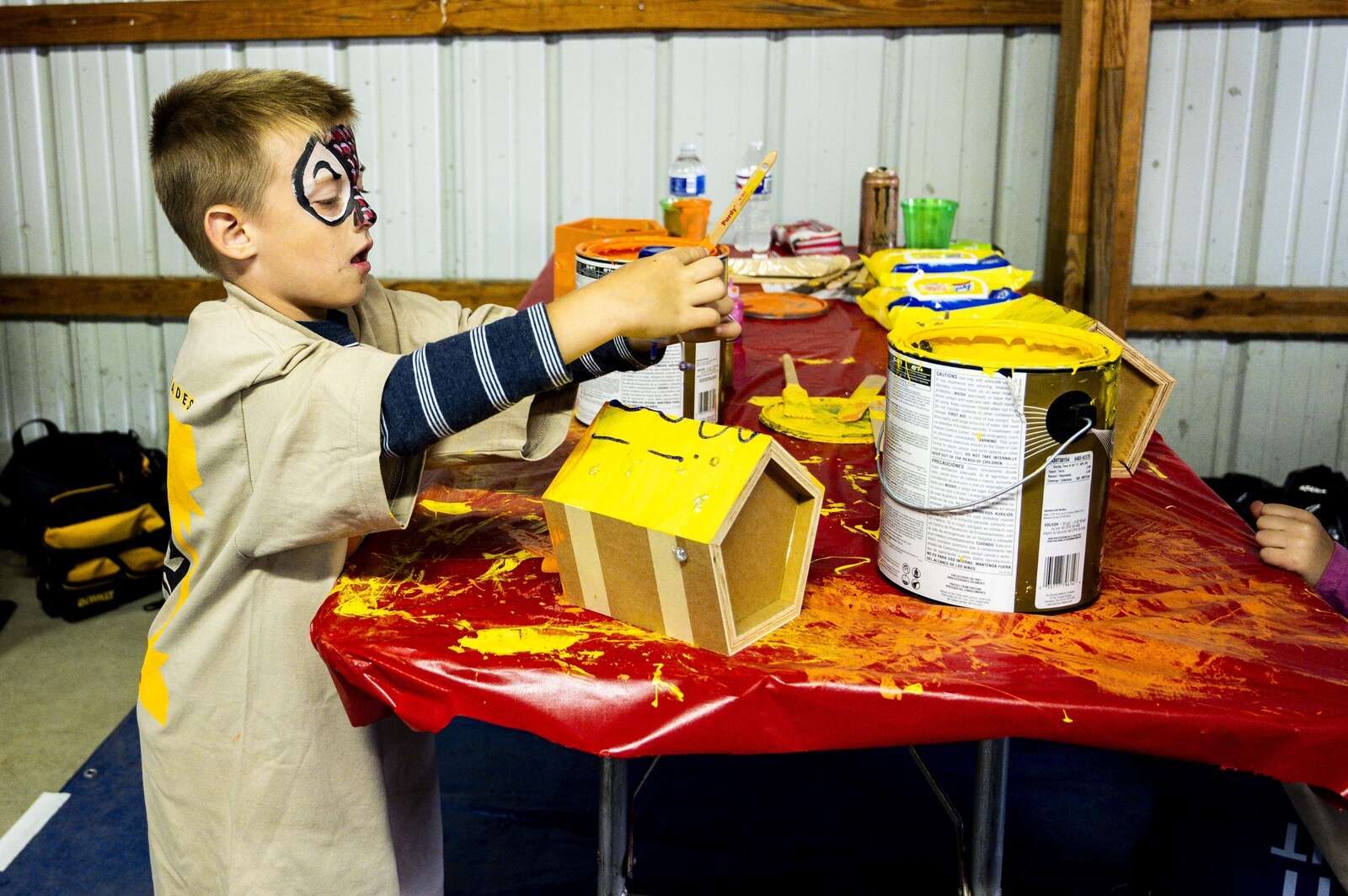 EJ Farster works on painting a miniature house during Family Fun Night on Tuesday, Aug. 20, 2024, at the Butler Farm Show grounds in Connoquenessing Township. Rob McGraw/Butler Eagle