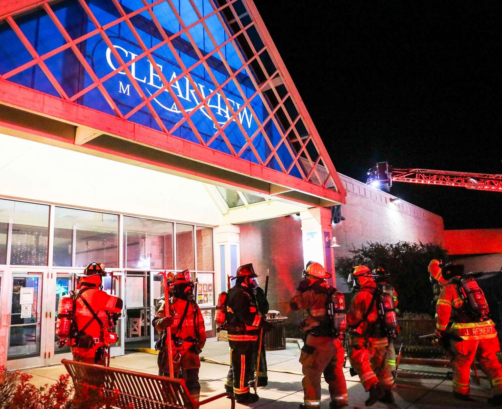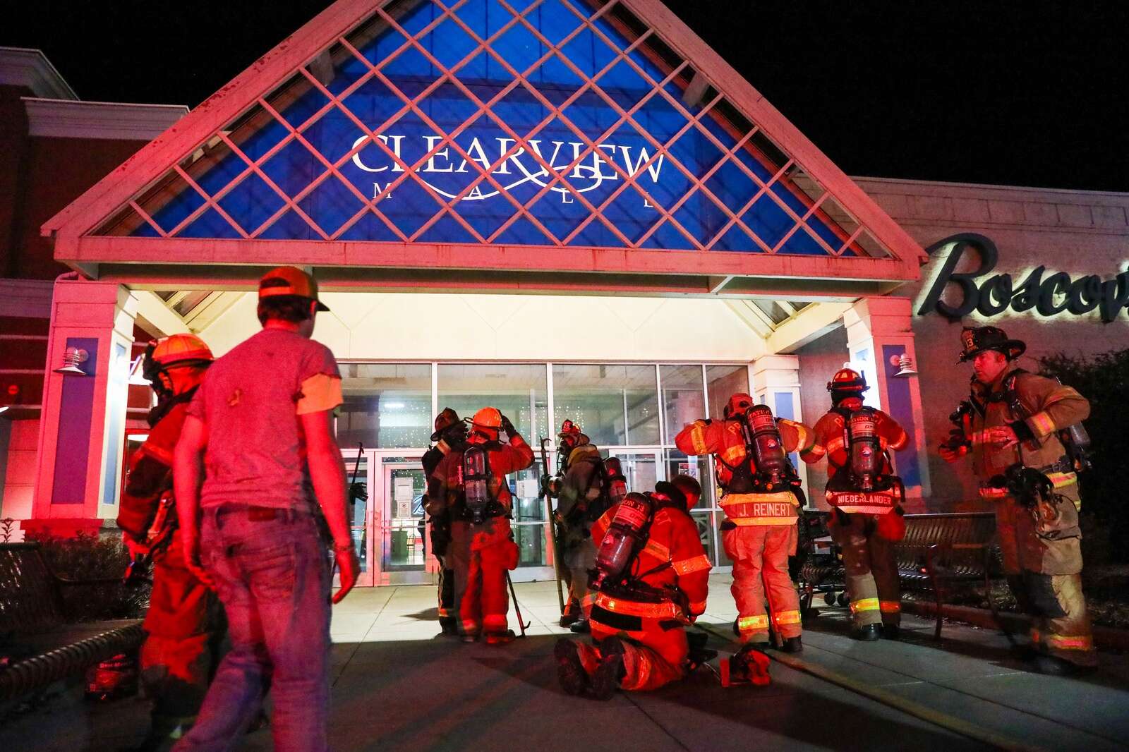 Multiple fire trucks, lights and sirens deployed, sped to the Clearview Mall’s front entrance Tuesday as dozens of panicked and gasping occupants of the mall fled the building.