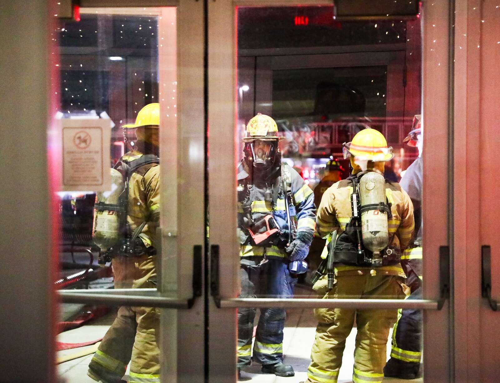No water was used in the exercise, although firefighters trained on hooking up and stretching hoses to the supposed burning areas of the mall.