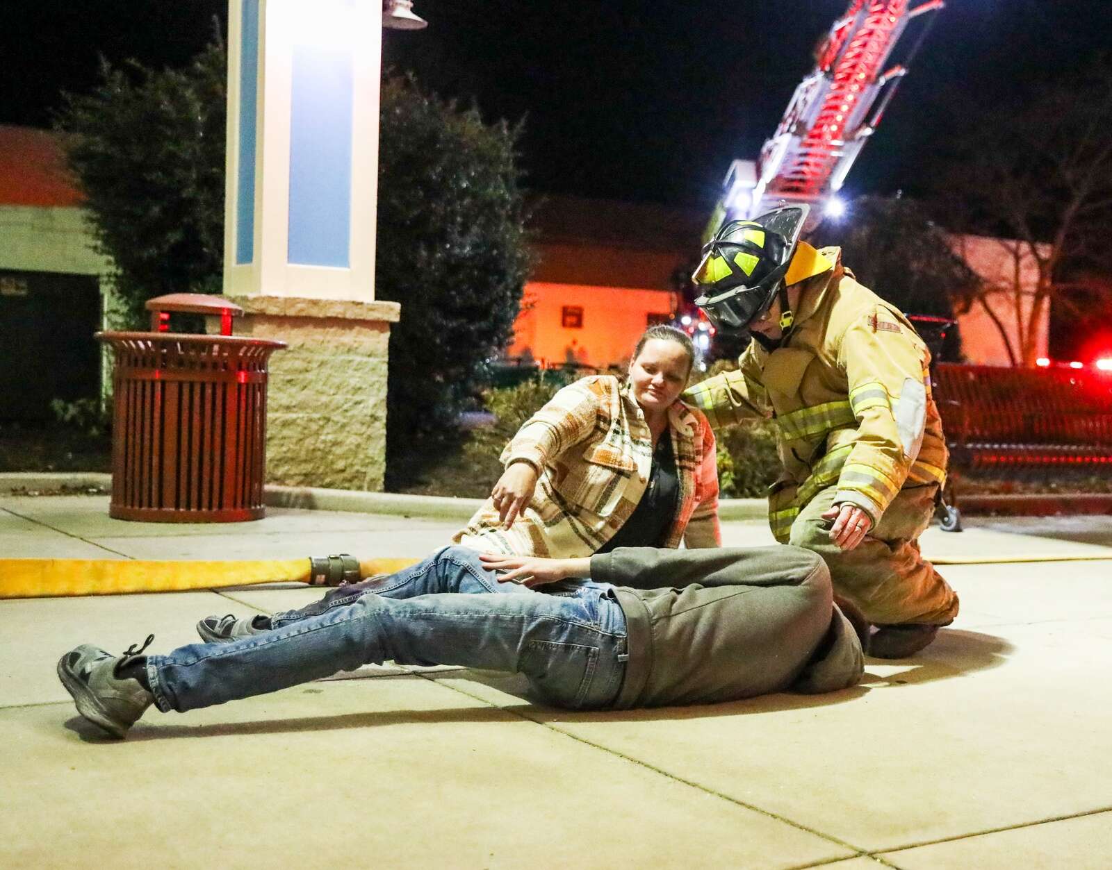 Some civilian actors played deceased victims of the fake fire so firefighters could experience a scenario as close to the real thing as possible.
