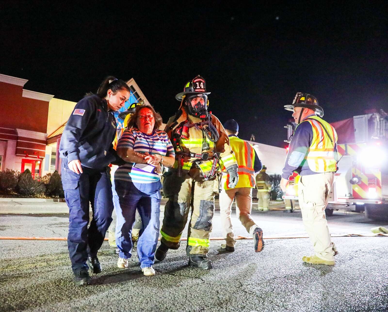 Firefighters practice helping “victims” during a fire department training event at Clearview Mall in Butler on Tuesday, Nov. 26. Morgan Phillips/Butler Eagle