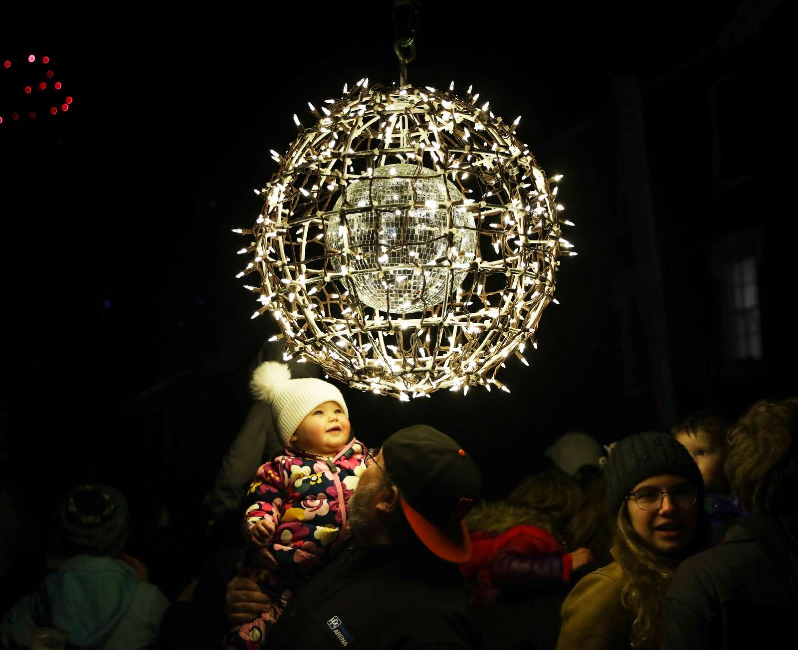 As time ticked closer to 6 p.m. — midnight in Germany — the crowd began to consolidate around the New Year’s ball. Luek thanked RB Tree Service for updating the lights on the ball before the event and being responsible for the drop.