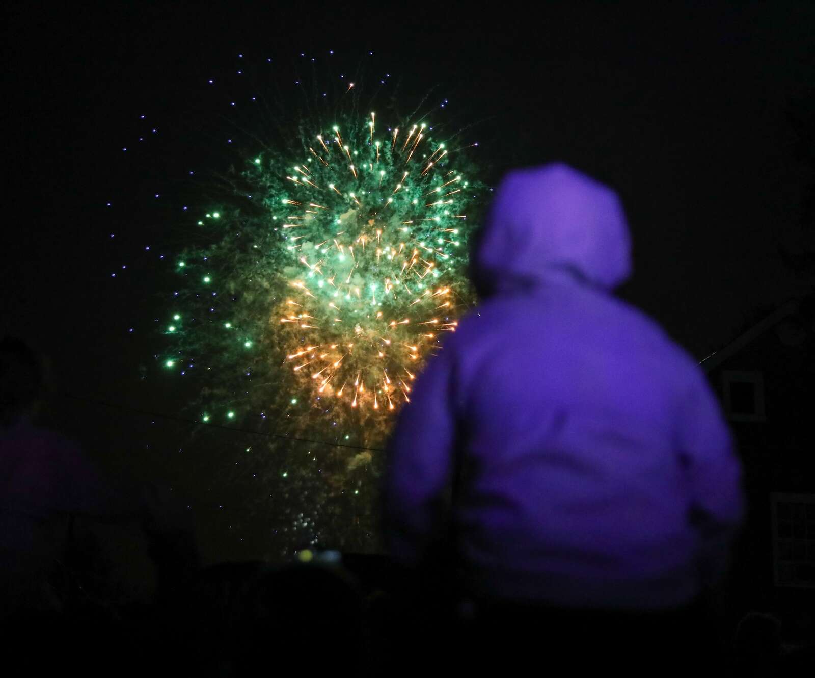 Attendees watch fireworks after the ball drop during the Harmony Silvester Celebration in Historic Harmony on New Year's Eve on Tuesday, Dec. 31. Morgan Phillips/Butler Eagle