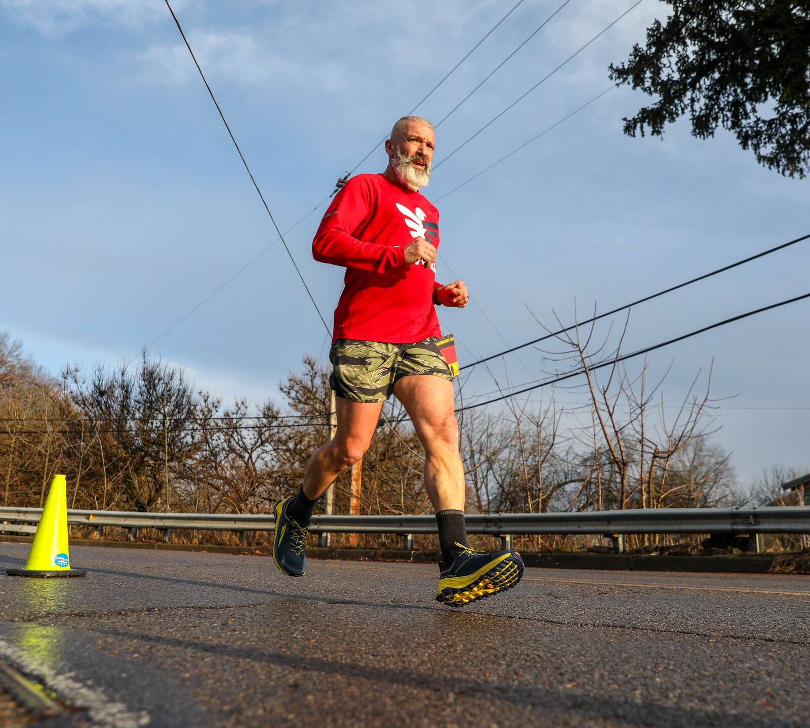 Ted Zablocki approaches the finish line during the Harmony Silvester 5K Run ahead of The Harmony Silvester Celebration in Historic Harmony on New Year's Eve on Tuesday, Dec. 31. Morgan Phillips/Butler Eagle