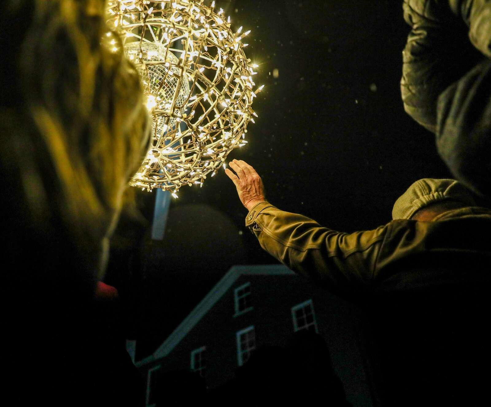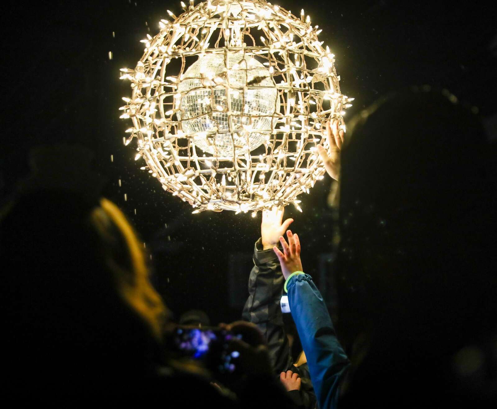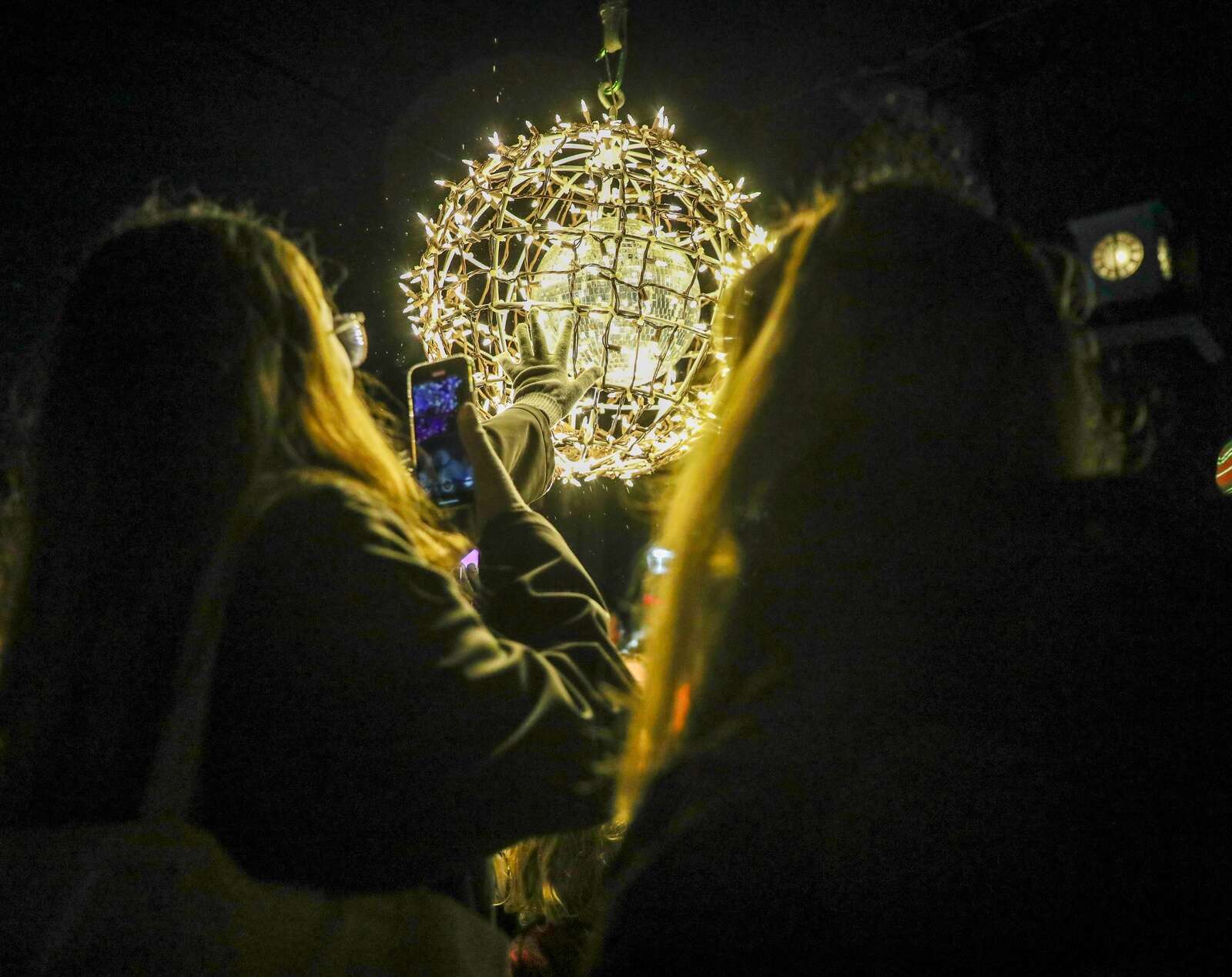 The ball drops as attendees touch it during The Harmony Silvester Celebration in Historic Harmony on New Year's Eve on Tuesday, Dec. 31. Morgan Phillips/Butler Eagle