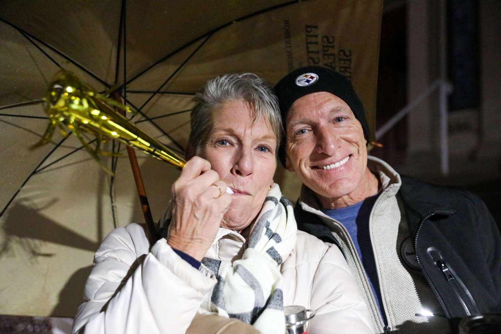 Nancy Wolff and Chris Boles ring in the New Year with party horns after the ball drop during The Harmony Silvester Celebration in Historic Harmony on New Year's Eve on Tuesday, Dec. 31. Morgan Phillips/Butler Eagle
