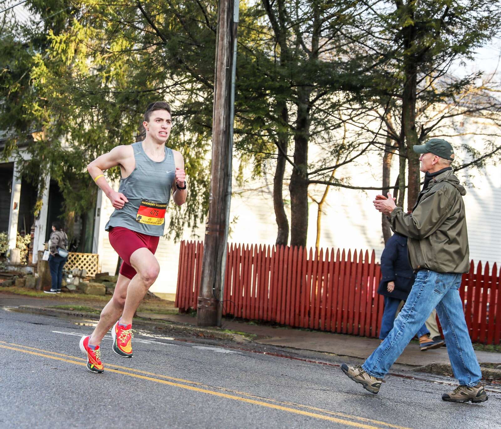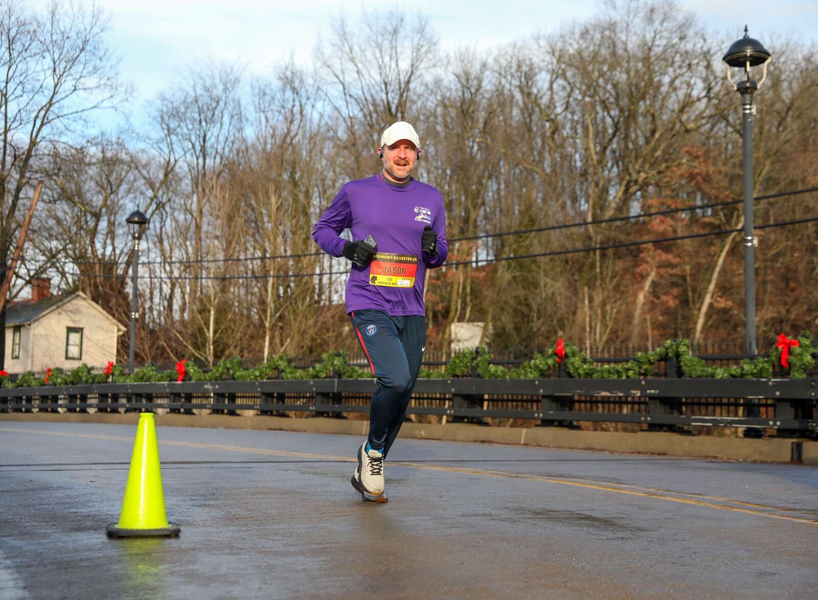 Jason Smith approaches the finish line during the Harmony Silvester 5K Run ahead of The Harmony Silvester Celebration in Historic Harmony on New Year's Eve on Tuesday, Dec. 31. Morgan Phillips/Butler Eagle