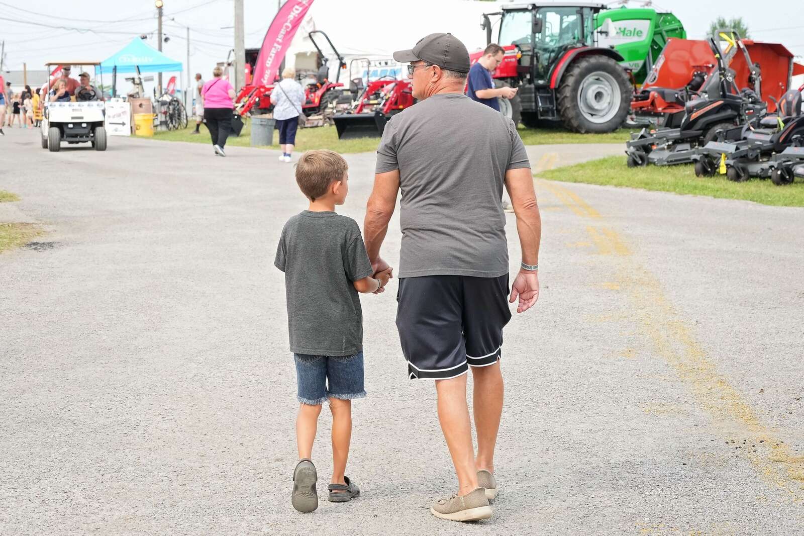 Wrigley Garcia and his dad, Denny, walk hand in hand at the Butler Farm Show on Monday, Aug. 5. Holly Mead/Special to the Eagle