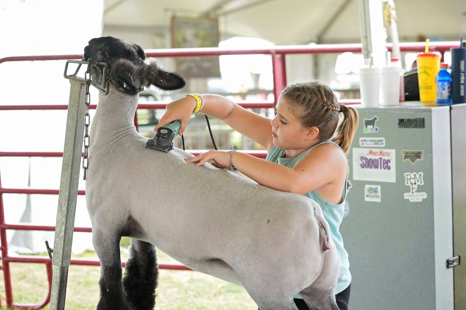 Adalynn Guiher, 9, sheers her sheep Peaches at the Butler Farm Show on Monday, Aug. 5. Holly Mead/Special to the Eagle