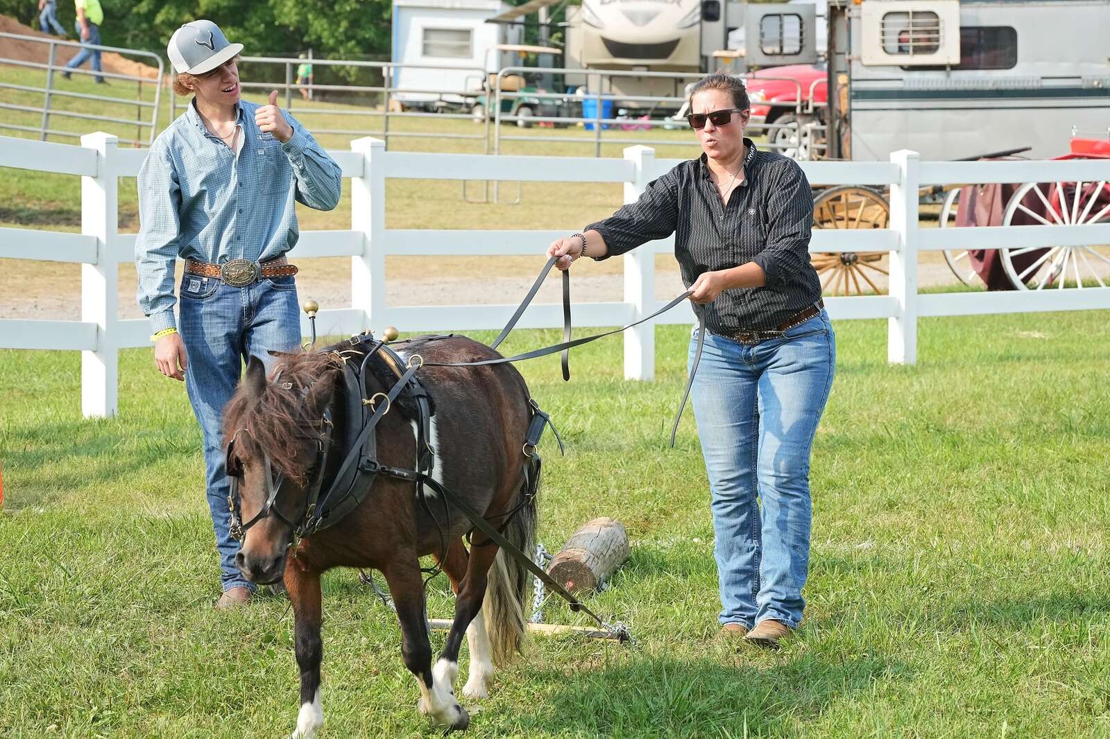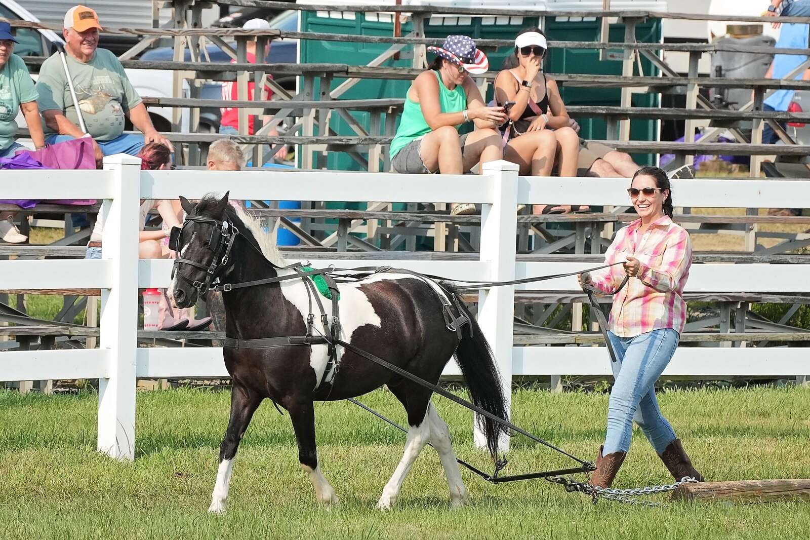 Other competitors included Amanda Hartshorn and her horse, Spooky, who won the adult pony, miniature horse, and single adult pull competition.