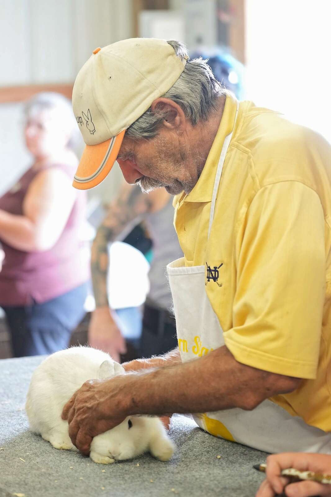 Tom Berger judges the rabbits entered at the Butler Farm Show on Monday, Aug. 5. Holly Mead/Special to the Eagle