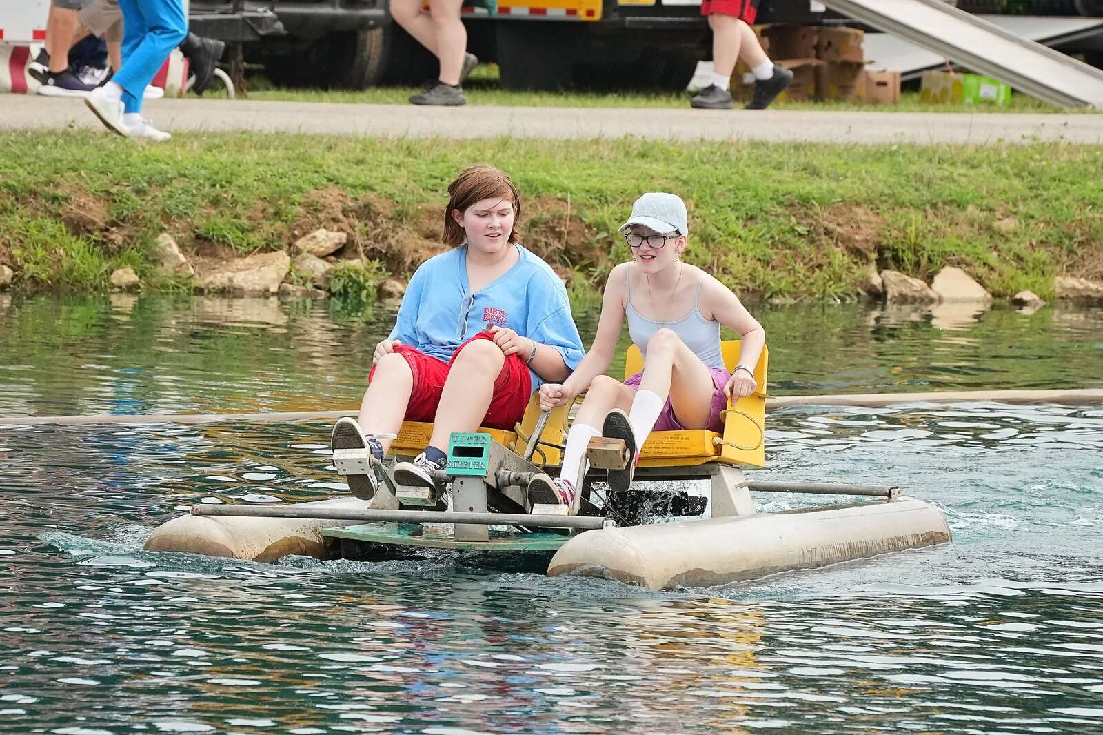 Charlotte Parker, Sarah Campbell paddle around the pond at the Butler Farm Show on Monday, Aug. 5. Holly Mead/Special to the Eagle